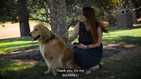 mostrou o que muita gente gostaria de ver: um Dug na vida real. Portando um colar com alto-falante, o cãozinho foi solto no parque enquanto a reação das pessoas ao encontrá-lo era gravada com câmeras escondidas.
