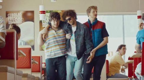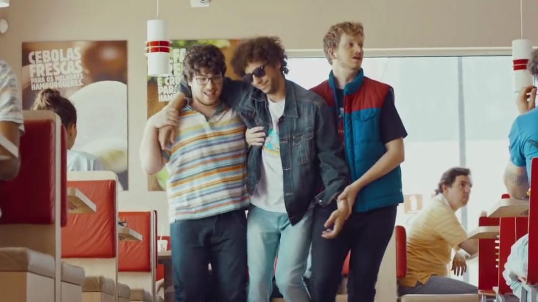 O clipe é uma releitura rápida do filme: mostra a história de dois amigos que precisam cuidar de um terceiro que parece dormir de felicidade (?) após experimentar o hambúrguer. E é aí que entram as referências que para os mais novos podem lembrar um pouco de “Se beber não case“. – se você ainda não assistiu “Um morto muito louco”, faça isso hoje ainda.