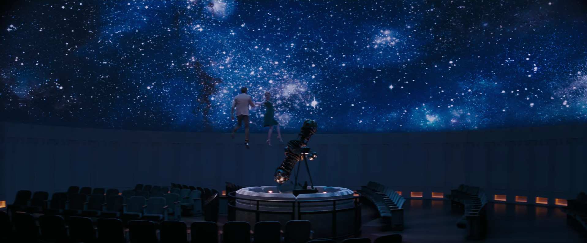 Seus personagens principais são imagens desse desejo-a-realizar: Mia (Emma Stone) é uma barista que se esforça para ser atriz; Seb (Ryan Gosling), um pianista que planeja abrir um clube de jazz. Os sonhos estão em todo lugar, da atmosfera de fantasia da sequência no observatório ao conteúdo de um de seus números musicais mais decisivos (“Um brinde aos sonhadores”, recado aos tolos que ousam imaginar, é também seu verso mais marcante). A batalha por um final feliz não é simples, no entanto.