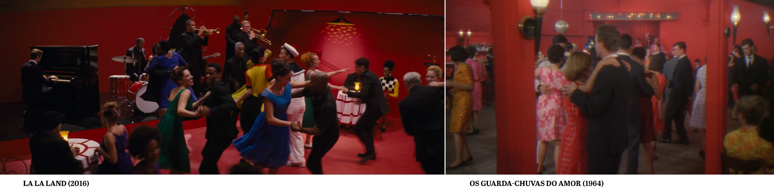 A câmera segue a mesma lógica, dançando uma melodia particular e flutuando pelos cenários cuidadosamente desenhados, charmosos em sua simplicidade. As inspirações são várias, e o diretor assume o tom de homenagem, “a ideia de que você pode reimaginar esses filmes antigos”. Suas referências englobam desde os musicais animados dos estúdios Disney até as produções francesas dos anos 1960 (“Cinderella” é o primeiro filme de que ele tem memória; “Os Guarda-Chuvas do Amor”, seu favorito de todos os tempos), mas a nostalgia ganha forma mesmo em relação à Hollywood dos anos 30, 40 e 50.
