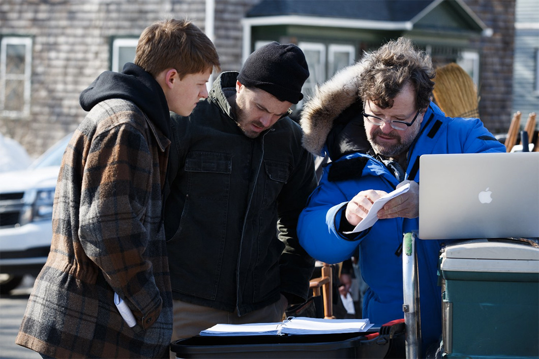 Casey Affleck, Lucas Hedges e o diretor Kenneth Lonergan no set