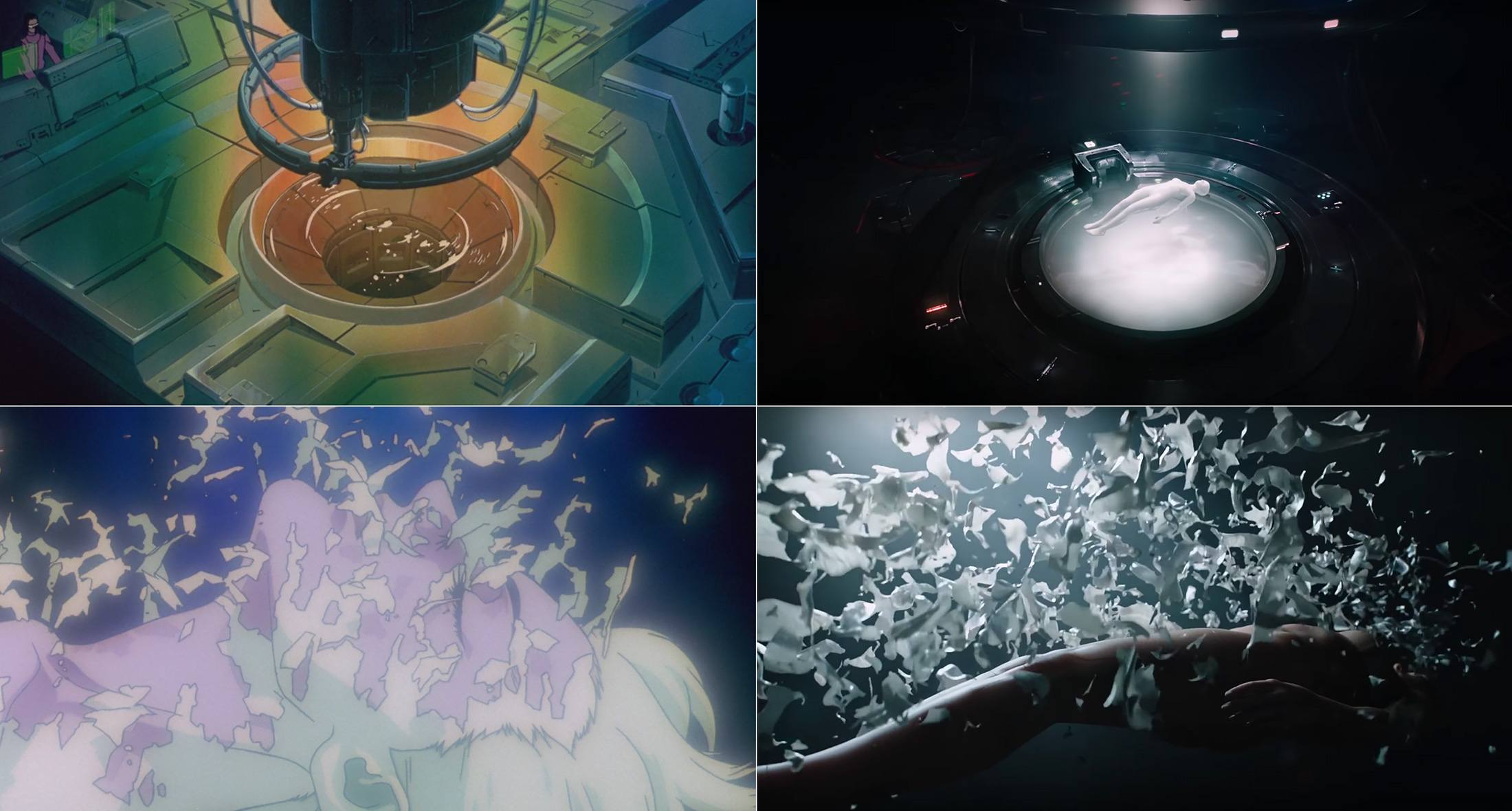 A construção de uma atmosfera particular em que real e virtual (ou real e sonho) se confundem é um dos grandes trunfos do “Ghost in the Shell” dos anos noventa — e, em larga medida, das melhores animações japonesas do período. Diante da difícil missão de erguer esse universo, Sanders e companhia se valem dos efeitos digitais para criar uma cidade de aparência artificial, que se relaciona com os componentes robóticos dos moradores ao mesmo tempo em que afeta o que há de humano neles. Os corpos sintéticos parecem adaptados; a consciência, inquieta, diz o contrário.