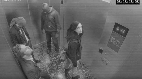 O vídeo (assista acima) mostra a equipe da Marvel reunida em um elevador. Enquanto Demolidor, Luke Cage e Punhos de Ferro simplesmente aguardam, cansados, no que parece ser uma cena pós-luta (note a roupa do Luke Cage cheia de marcas de tiros), Jessica Jones salta para destruir a camera de segurança.