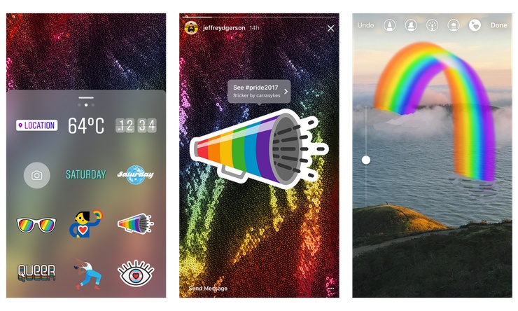 Dentre os adesivos estão arco-íris, óculos e um megafone, que vão ter uma conexão direta com a hashtag #Pride2017, facilitando com que os usuários naveguem pelo tema e acompanhem as celebrações ao redor do mundo.