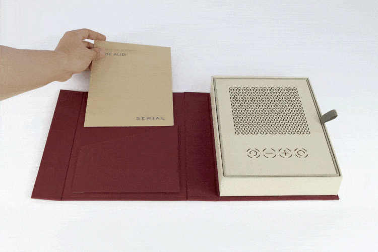 Serial, um dos programas de maior sucesso mundialmente e que tem formato de documentário investigativo, foi representado no formato de livro, que conta com fotos dos crimes e alguns detalhamentos por escrito. Tudo isso em uma “embalagem” que faz jus aos típicos livros presentes em delegacias e tribunais. Para escutar o programa, basta inserir o folheto que será lido por radiofrequência no material.