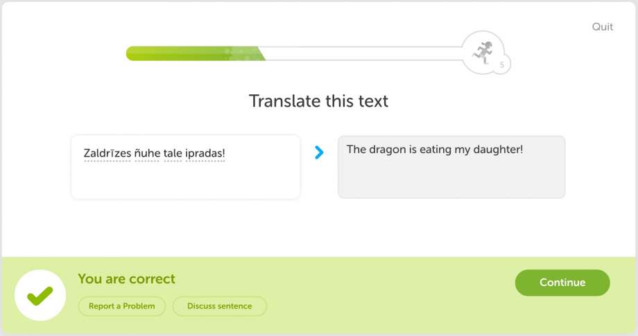 O curso ainda não está pronto, mas na ferramenta “Incubator”, que o Duolingo usa quando desenvolve um novo curso, ele está marcado para entrar em beta no dia 16 de julho e é necessário saber inglês como base. Ele foi desenvolvido com auxílio de David J. Peterson, o linguista americano responsável por criar o idioma para a série. Ele também criou outro, chamado Dothraki, mas esse ainda não tem data para aparecer no serviço.