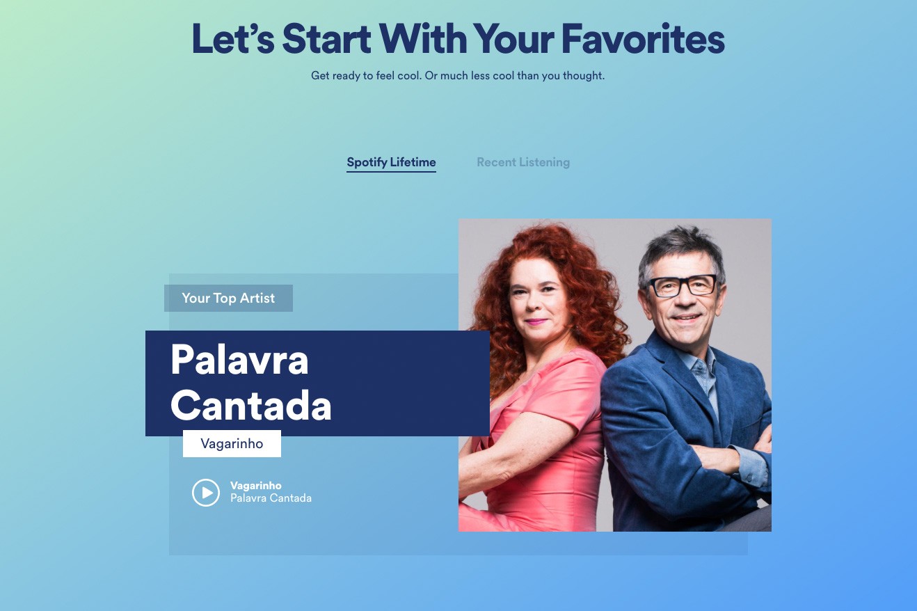 Dessa vez, o serviço colocou no ar o Spotify.me, um hotsite onde os usuários podem analisar e compartilhar dados de usabilidade do serviço como: artista e música preferidos, tempo e horário do dia em que mais escuta música, e outras estatísticas criativas vide o quão dançantes, enérgicas ou “good vibes” são suas playlists.