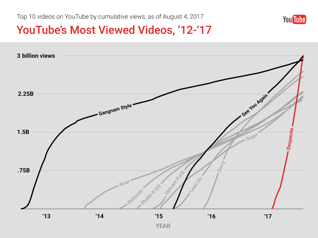 se torna o vídeo mais assistido na plataforma em todos os tempos. O clipe de Luis Fonsi e Daddy Yankee ultrapassou hoje a marca de 3 bilhões de views.