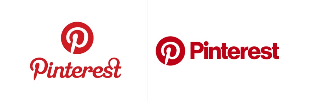 O nome “Pinterest” sai debaixo do logo e vai para a lateral, mudando também a fonte utilizada. O “P” continua igual e como identificador principal do Pinterest.