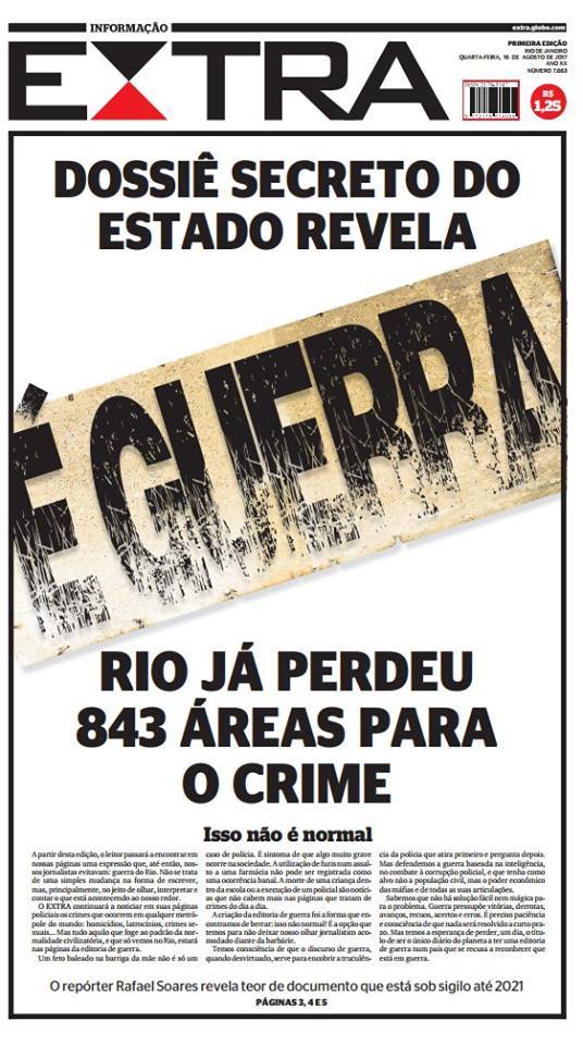 Por isso me chamou a atenção quando o editor do Jornal Extra repetiu quase que literalmente essas palavras para justificar a criação de uma Editoria de Guerra para o Rio de Janeiro.