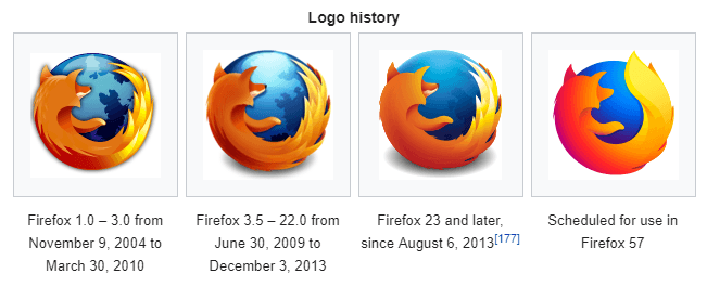 O novo logo chega para marcar o lançamento do Firefox 57. Esta versão traz uma nova identidade visual, chamada de Photon Design System. Além da mudança de alguns elementos, como os ícones dentro do navegador, o Photon Design System também traz uma nova tipografia, novas ilustrações e uma nova paleta de cores.