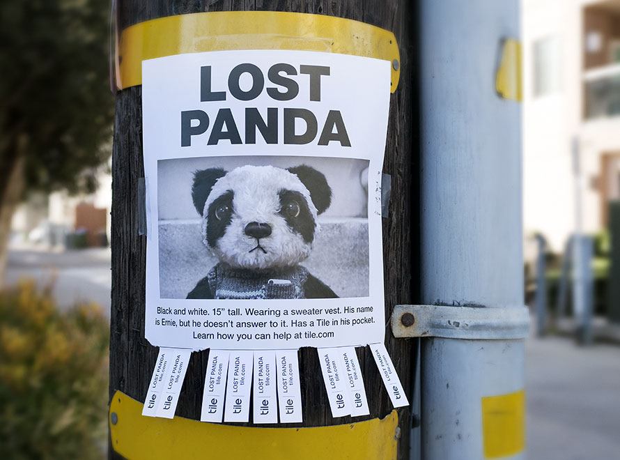 “Lost Panda” é o primeiro grande comercial da Tile. Criado pela agência Deutsch e com produção da Smuggler, o filme será exibido na TV e Internet. Além do filme, Ernie também aparece em ações offline. Cartazes com o panda perdido foram espalhados em São Francisco e Nova York. O mascote também vai aparecer em livros infantis com histórias inspiradas pelos clientes.