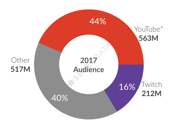 Em 2016, o YouTube conseguiu reunir 517 milhões de espectadores enquanto o Twitch teve 185 milhões.