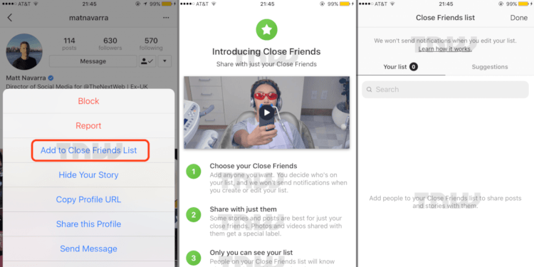 A função “amigos íntimos” (close friends) seria uma resposta ao fenômeno do finsta, ou Fake Instagram, em que os usuários (principalmente americanos) criam contas paralelas às que já possuem oficialmente no Instagram, em ordem de compartilharem apenas com amigos próximos conteúdos que não querem que os demais seguidores vejam. Com a nova ferramenta que está sendo testada pelo Instagram, seria possível fazer o compartilhamento seletivo sem a necessidade de criar outra conta, como se fosse uma extensão da função de “favoritos” testada pelo aplicativo no começo do ano.
