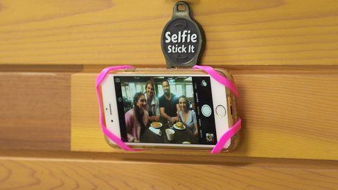 O novo acessório é um tanto mais prático que o bastão ainda famoso entre turistas. O Selfie Stick-It é um suporte de smartphone sem fio que “cola” praticamente em qualquer lugar. Você pode anexá-lo a madeira, vidro, espelho, mármore, entre outros materiais, na altura e posição desejada.