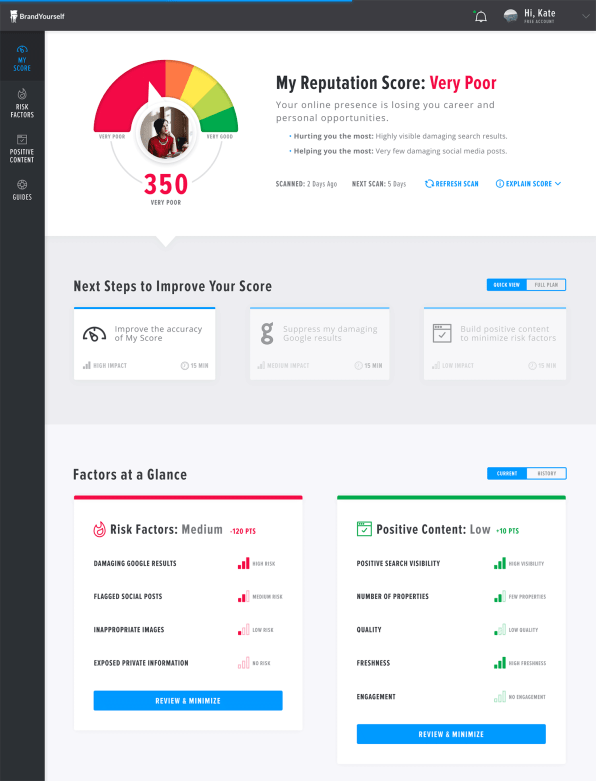 O que a BrandYouserlf propôs é utilizar a mesma ferramenta para dar a chance dos usuários reverem seu passado. Com um sistema robusto de pesquisa, a plataforma reúne conteúdos de vídeo, imagens, postagens e até mesmo materiais marcados à você, em um período de até 10 anos. Além de destacar os pontos negativos desse perfil, ela também dá recomendações do que deve ser removido ou não.