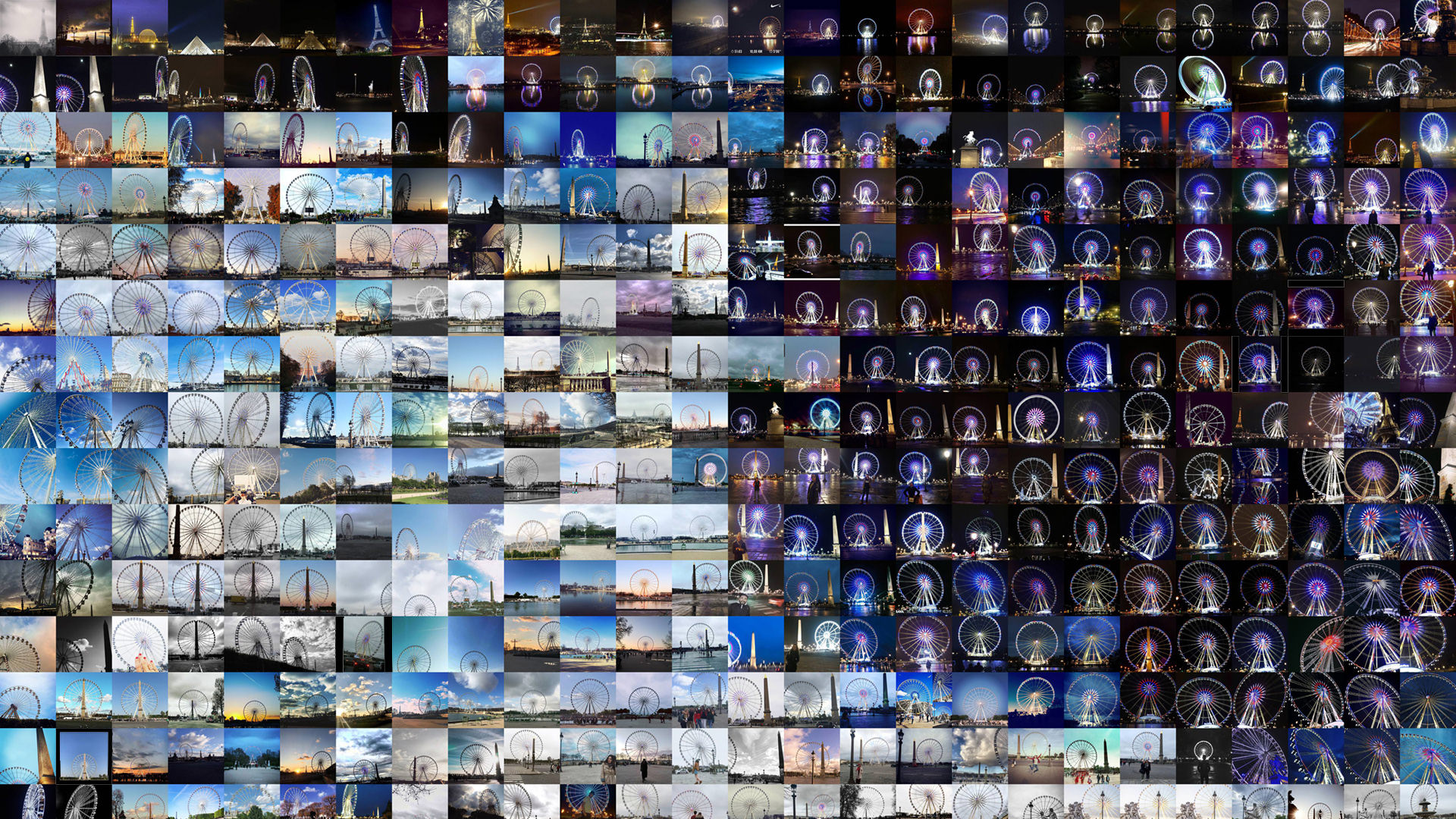 Uma recém-criada base de dados visual, porém, está disposta a mostrar que não é só nas férias que as pessoas caem nos clichês na hora de botar em ação seu lado fotógrafo. Projetada pelo pesquisador e artista alemão Moritz Stefaner, o Multiplicity usa milhares de fotos publicadas na rede social de fotos do Facebook em Paris para construir gigantescos mapas de imagens com um único propósito: identificar os padrões imagéticos usados pelos visitantes e habitantes parisienses na hora de registrar a cidade. A instalação foi construída para a exibição 123 Data