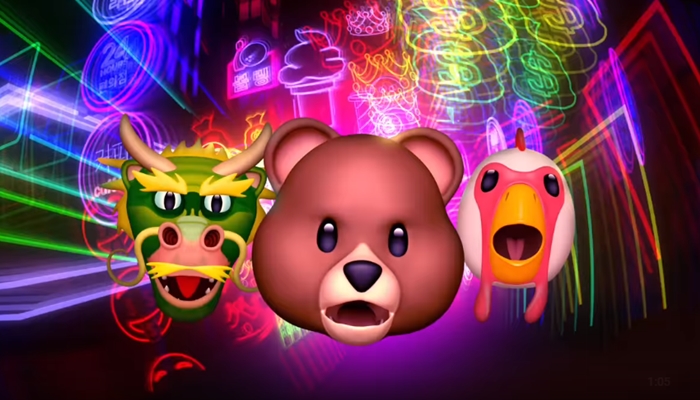 O vídeo mostra os Animojis cantando, com destaque total para a galinha que grita