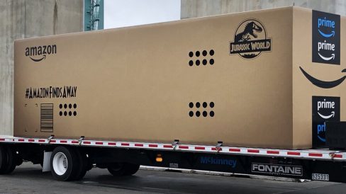 Caminhão de entrega da Amazon está rodando Los Angeles com uma encomenda de proporções… “jurássicas”