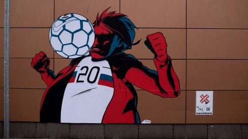 Como parte de uma campanha da Wieden & Kennedy Amsterdam, a Nike pintou 240 murais, entre 2 e 16 metros em korobkas de Moscou, com cada peça sendo uma cena de um atleta russo dominando o jogo.