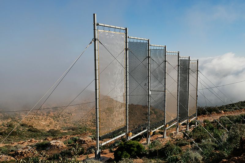 Parecido com um muro, o coletor de neblina é simples de instalar e manter, não precisando de energia para funcionar. Ele fica posicionado em perpendicular ao vento e capta a água das nuvens de neblina, suportando ventos de até 120 km/h. Quando a neblina condensa, a água é direcionada por canos diretamente para canais de irrigação ou de consumo.
