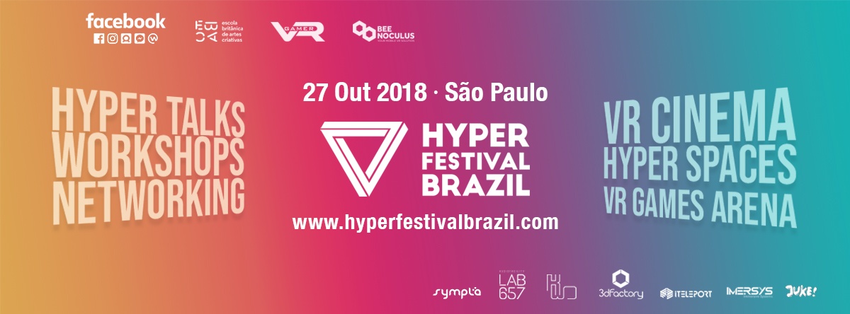 Em sua 3° edição, o Hyper Festival Brazil, evento exclusivo sobre o mercado e produção das chamadas Realidades Imersivas (VR, AR, 360°), acontece em São Paulo, no dia 27 de outubro na Escola Britânica de Artes Criativas (EBAC), na Vila Madalena.