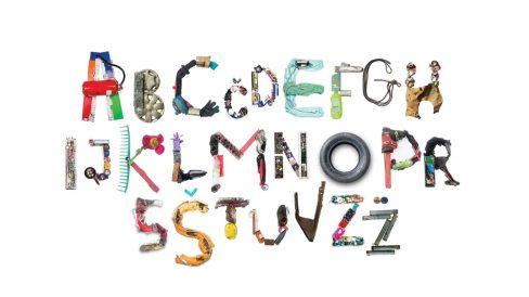 Nova tipografia recria letras do alfabeto à partir de pneus, garrafas, cabos e até arados de terra