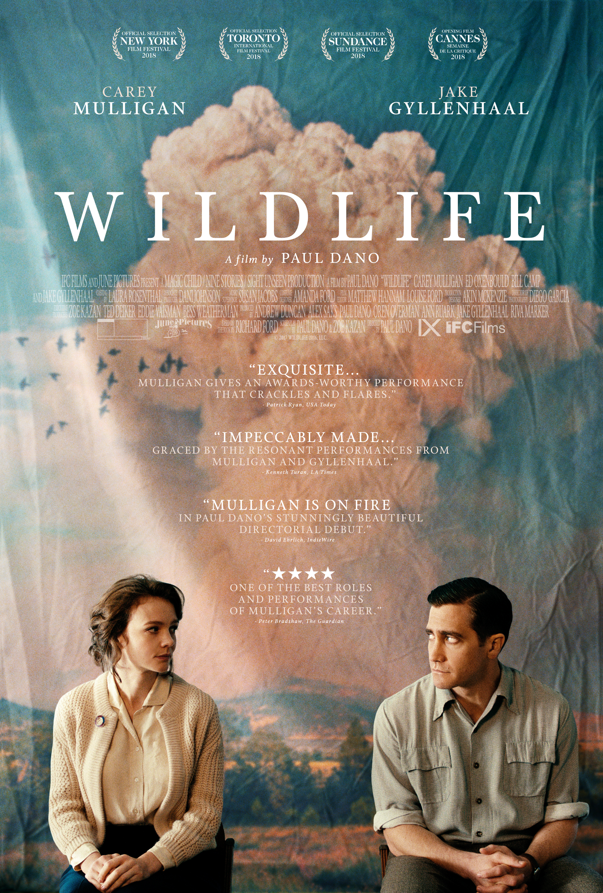No caso de “Vida Selvagem”, o rompimento é em cima dos valores tradicionais pertencentes ao casamento e (em especial) à família, duas construções sociais cujas instabilidades no filme são pintadas por Dano pelo viés mais puro da tensão do indivíduo com seu dever comunitário. A trama, afinal, segue uma crise de relações pautada por uma ausência de adequação dentro da hierarquia, acompanhando o afastamento emocional do casal formado por Jerry (Jake Gyllenhaal) e Jeanette (Carey Mulligan) à partir do momento que o primeiro perde o emprego menor num resort de golfe e passa a questionar os caminhos profissionais tomados. É uma tomada de consciência do lugar ocupado, porém, que não será desempenhada em um aspecto externalizante ou de uma inconformação revolucionária, mas sim pelas vias do íntimo: depois de passar meses desempregado e ver a esposa e o filho Joe (Ed Oxenbould) assumirem serviços de meio-período para pagar as contas, Jerry resolve aceitar um emprego fora da cidade, ajudando no combate aos incêndios florestais da região do estado de Montana.