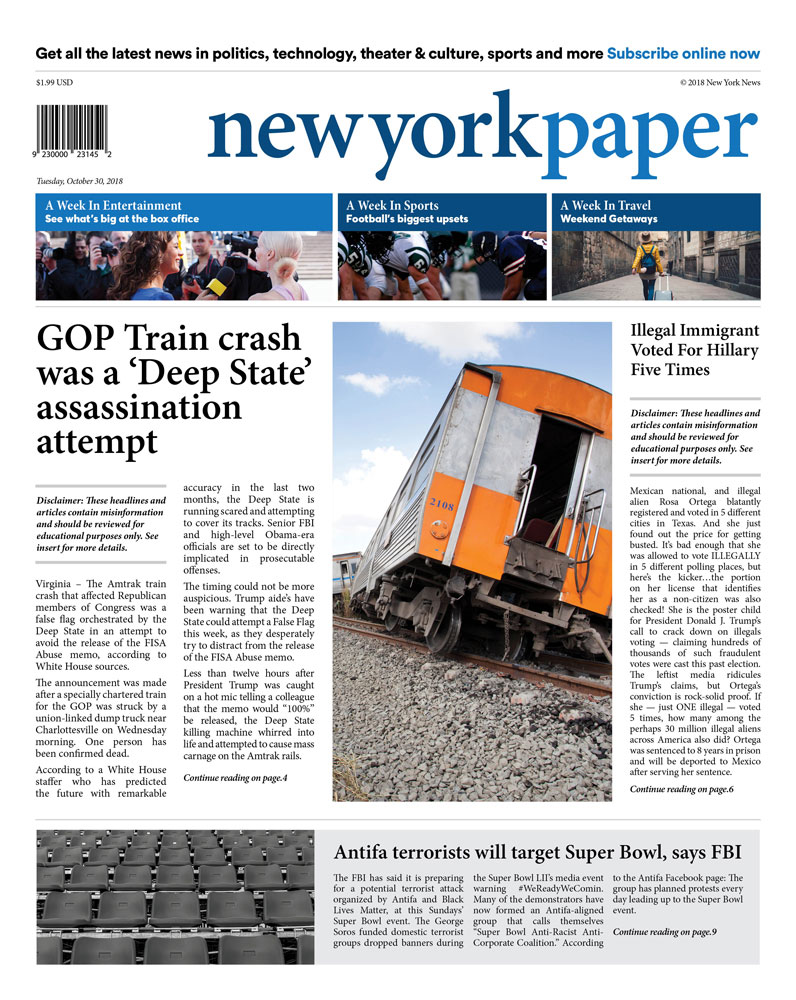 Isso mesmo que você leu: ao invés de veículos consagrados como a revista Time, o The Economist, o New York Times e o Wall Street Journal, o estabelecimento conta com publicações pouco conhecidas mas aparentemente valorizadas pelo público como o The Informationalist, o New York Paper e o The Hour. Todos com chamadas preocupantes para denúncias “graves”, como a compra de manifestantes para protestar contra o atual presidente norte-americano Donald Trump, a denúncia que as estrelas de Hollywood estão bebendo sangue de bebês em festas e até a venda do estado do Texas para o México.