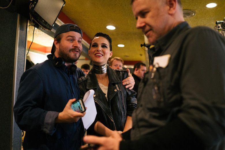 Brady Corbet (à esquerda) com Natalie Portman no set