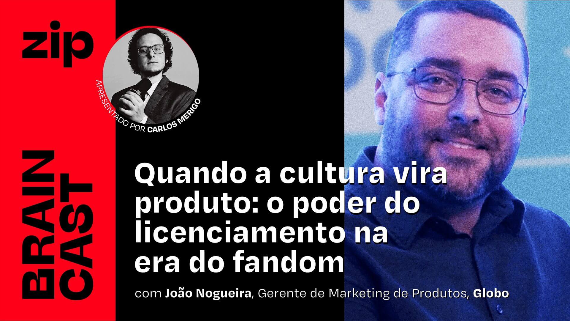 Neste Braincast Zip, gravado diretamente da Licensingcon 2025, Carlos Merigo conversa com João Nogueira, Gerente de Marketing de Produtos da Globo, para entender como a cultura pop, o entretenimento e o conteúdo estão sendo traduzidos em produtos, experiências e marcas que fazem parte do dia a dia das pessoas.