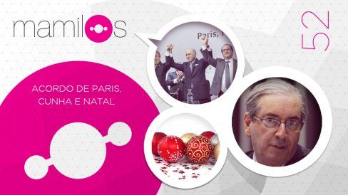 Ju: Cara! A gente usou bastante pra fazer a pauta dessa semana, essa revista é muito legal! Muito legal mesmo! Então, assim, não é que vai falar sobre bolsa, ela vai falar sobre justamente o acordo de Paris, sob a perspectiva de porque que as mulheres estavam envolvidas nisso e tal. Assim, é bem interessante, eu gostei bastante. Vale a pena conferir, vale a pena salvar no favoritos lá, a revista AzMina, AzMina.com.br, pra acompanhar o que que elas estão fazendo, o que que elas estão dizendo. A outra dica é o podcast, que na verdade é um programa de rádio da Eldorado, (se) chama “Quem Somos Nós?” com o Frei Beto. Cara é impressionante, e aí vale uma dica pros mamileiros do quanto vale a gente não parar de escutar uma opinião quando alguma coisa nos dá um ruído. Sabe? Então, tem coisas que ele fala que eu não concordo, tem coisa que eles fala que não tem embasamento, tem coisa que ele fala…. mas assim, quando ele acerta, ele tem coisas tão inspiradoras! Tem coisas que ele fala que são tão legais! Assim, esse programa eu já indiquei aqui, vale muito a pena esse podcast “Quem Somos Nós?”, mas esse especificamente com o Frei Beto, esse programa vale a pena escutar. Bom, principalmente final de ano, bá-bá-bá, de o que que a gente quer num momento de caos e bã-bã-bã, pra onde a gente tá indo, quem somos nós, pra onde vamos, da onde viemos. É muito legal! E o último é, como nós vamos ficar de férias e vocês vão ficar órfãos e vão ficar tristes, eu sugiro que se você ainda não fez a maratona do Mamilos, faça a maratona nas férias. Porque muitas vezes a gente parte da discussão, mesmo sem saber, a gente tá partindo de várias coisas que a gente já construiu lá atrás. Então assim, vale a pena fazer a maratona. Se você não tem tempo pra fazer a maratona, eu vou voltar a sugerir o Top 10 Mamilos. Então escute pelo menos o 41, que é de violência contra mulher; o 10, que é da boa morte: o 20, que é sobre educação; o 12, que é sobre violência policial; o 25, que é de jornalismo. Não dá pra fazer nenhuma discussão são escutar esse sobre jornalismo, que fala sobre o filtro que você tem que ter, inclusive pra escutar o Mamilos. O 8, que é sobre liberdade de expressão, cada vez mais atual; o 27, que é sobre reforma política, muito importante pra entender todas essas coisas que a gente faz depois; o 31, que é o manda nudes; o 2, que é sobre aborto: e o 29, pra, terminar em clima de amor, que é sobre namorados. Muito bem, temos um último programa. Gente, muito obrigada por mais um ano de Mamilos, e nos vemos em 2016.