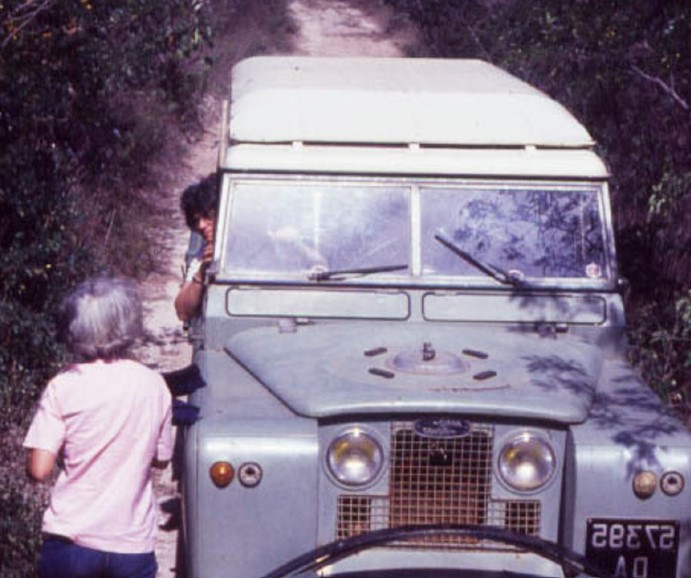 Niéde e Silvia rodam a Serra da Capivara de jipe… (Acervo FUMDHAM)