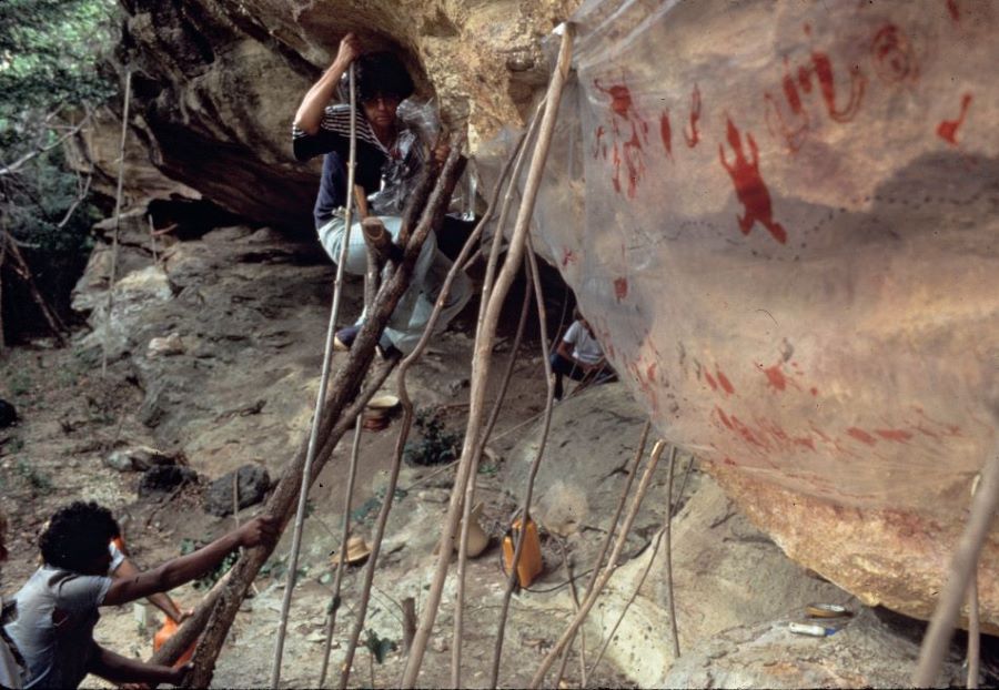 Niéde estudas pinturas rupestres. (Acervo FUMDHAM)